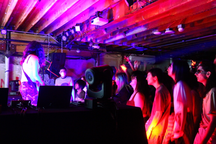 set opened with a short animated skit of two characters. One of them, supposedly representing her, is playing DDR. The animation style is reminiscent of low-poly PS2 games. This skit was continuous and reoccurring throughout the show. It told of the story of two friends hanging out while an old man stalks the character that represents underscores. After the skit ended, underscores came out on stage and greeted the crowd, everyone was cheering!